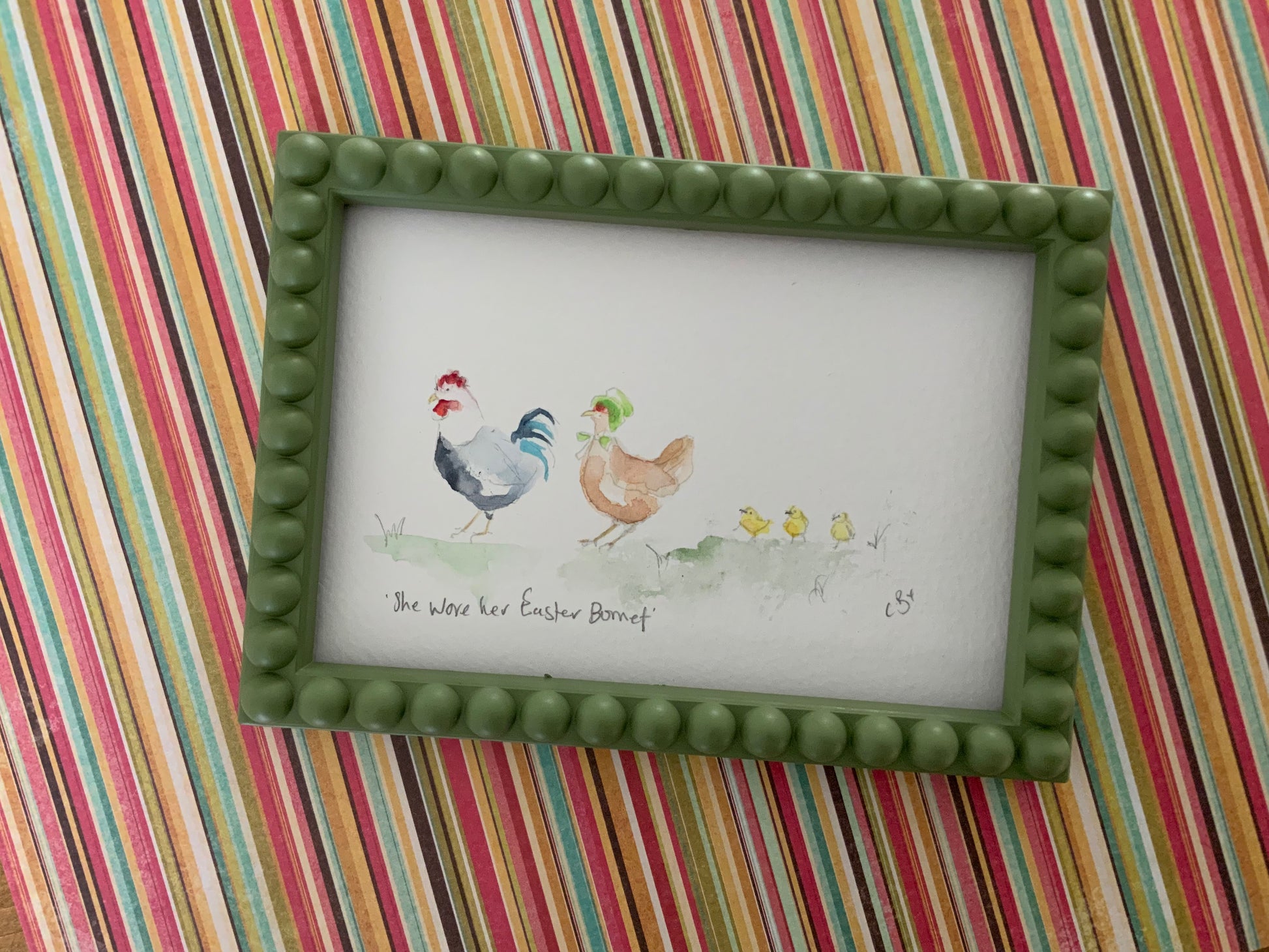She wore her Easter bonnet as an original watercolour in a cute little frame, perfect for a non-chocolate loving friend or family member