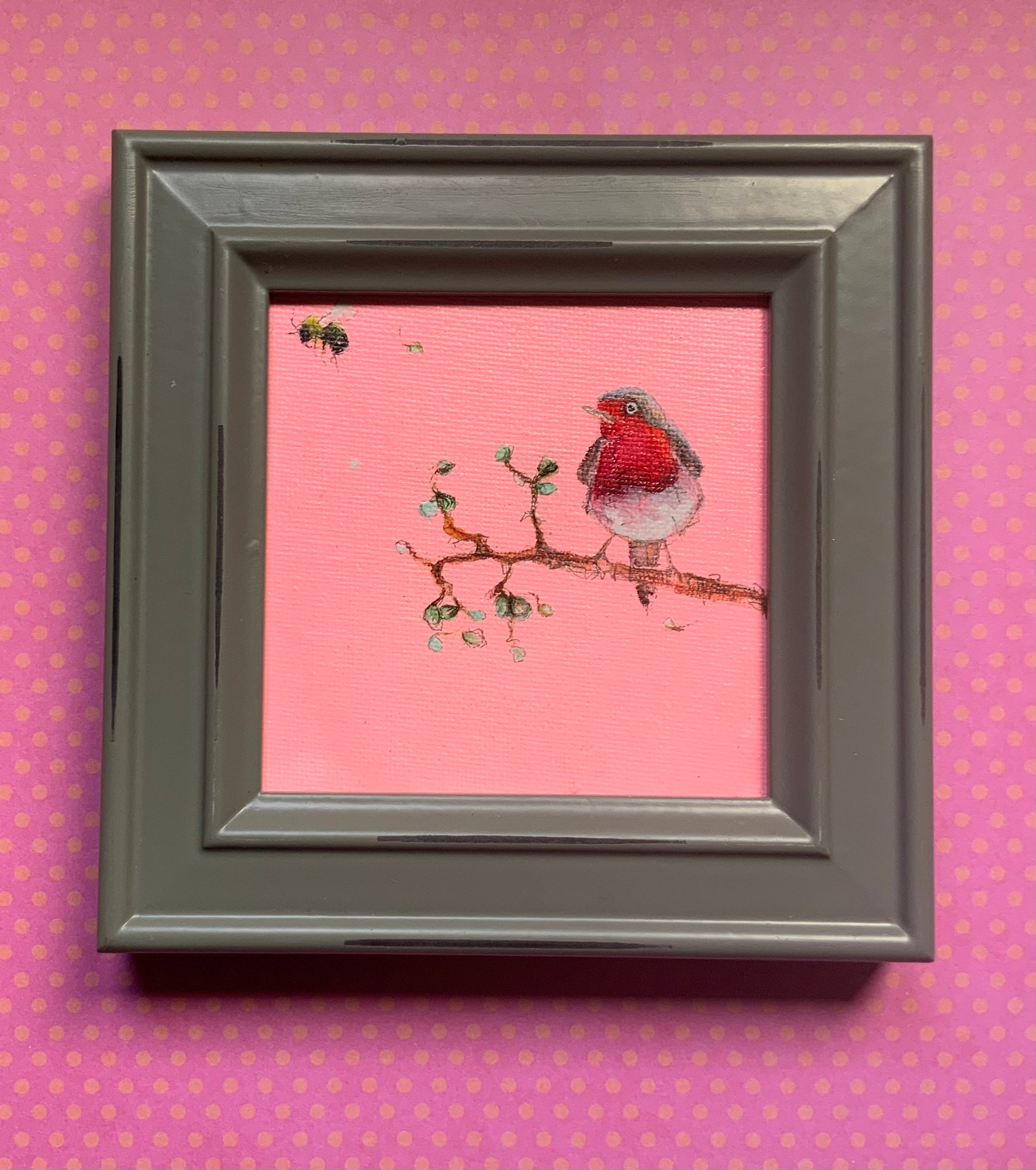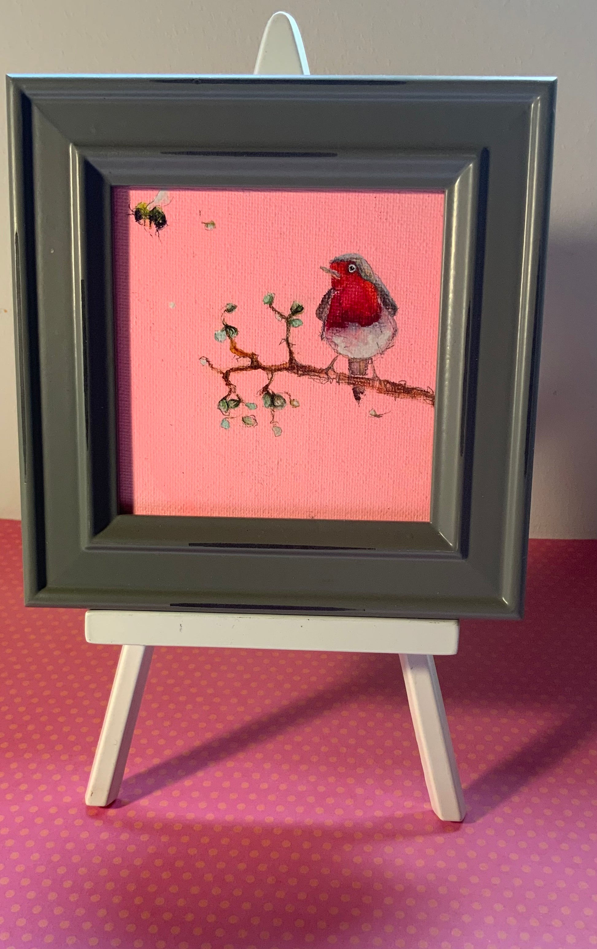 There is something about painting a robin on a really beautiful pink background… I always think it shouldn’t really work, but it does!